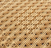 細かく割った木材を手作業で組み合わせ、釘をいっさい使わずに複雑な模様を編んでいく工程はまさに職人技です。