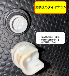 ③ダイヤフラム部を取り外し、新しい物を切り欠きに合わせて取り付けます。