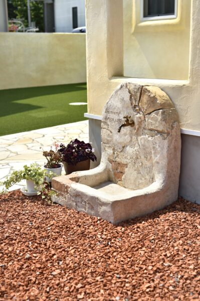テーマパークや店舗の装飾、住宅の外構などに使われています。