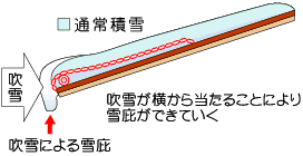 ただ、風により付着した雪は摩擦の抵抗がないため落雪する恐れがあります。