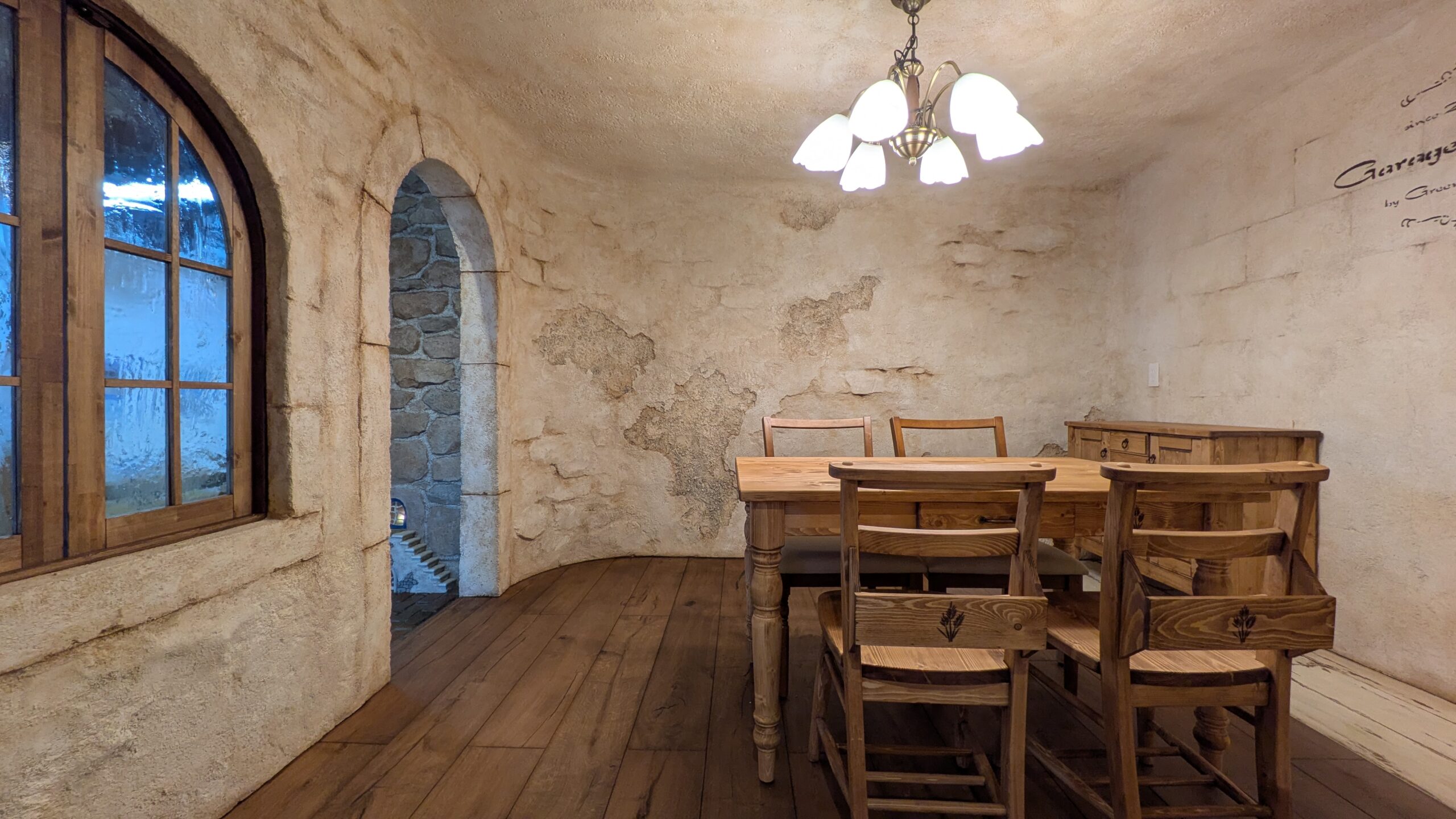 アーチ形状のフレンチウィンドウから室内の様子がみえます。