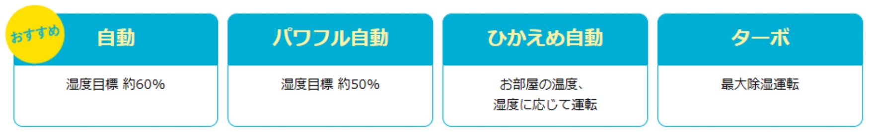 湿度が60%を超えると運転し、下回ると停止する自動制御を搭載しています。