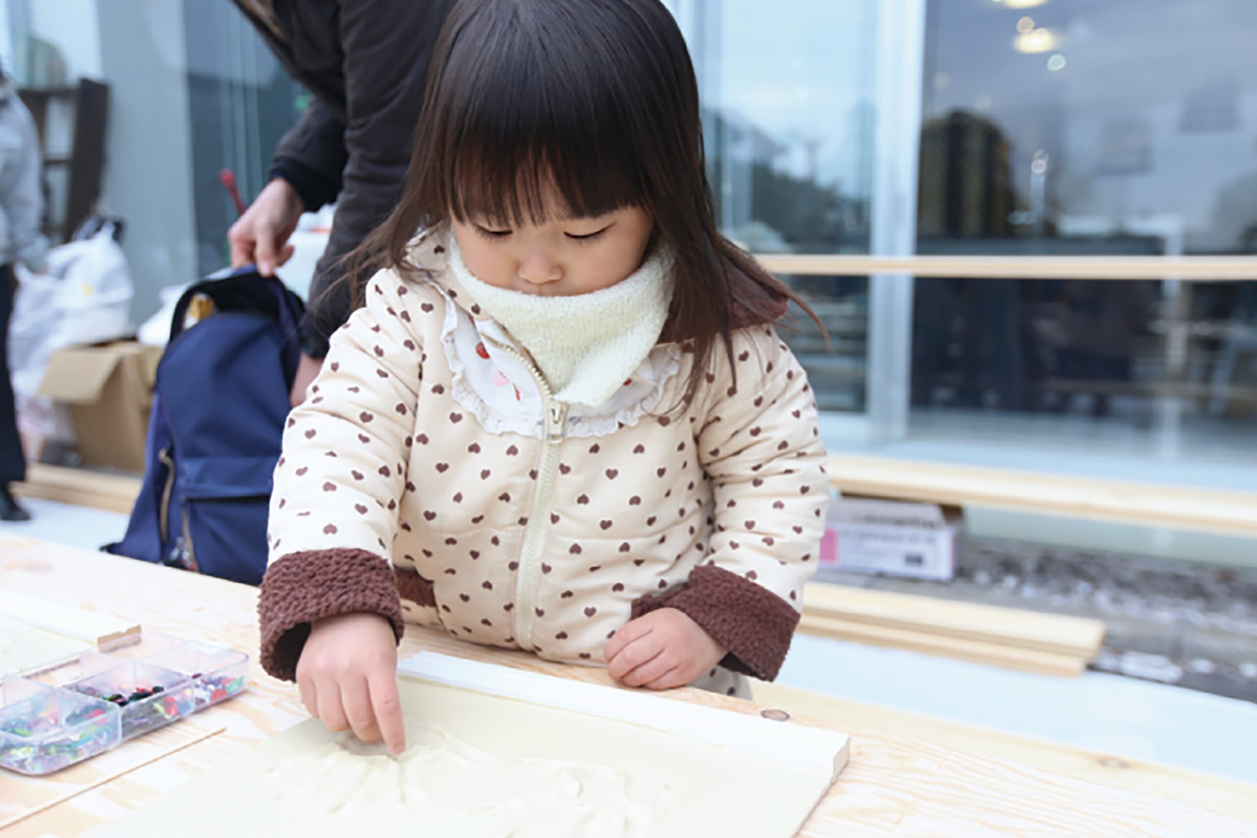 モルタル造形ブースの完成お披露目を記念して、家族の手形をプレゼント♪
