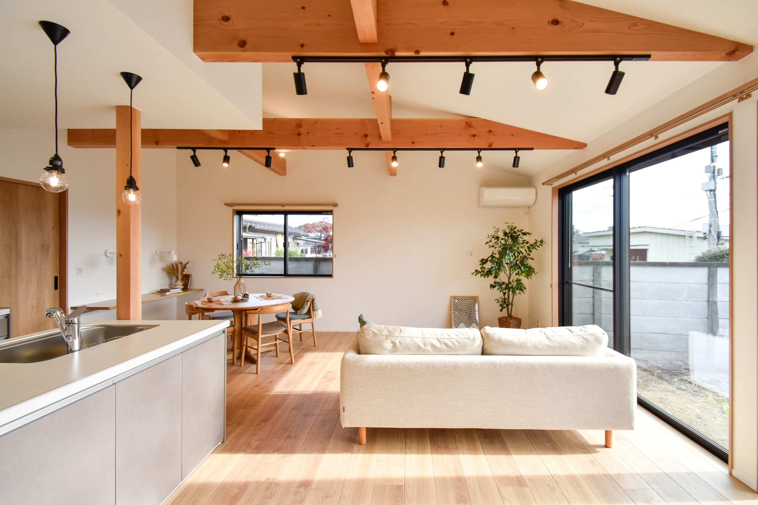 - 木目と曲線がやさしい開放的な快適動線の平屋