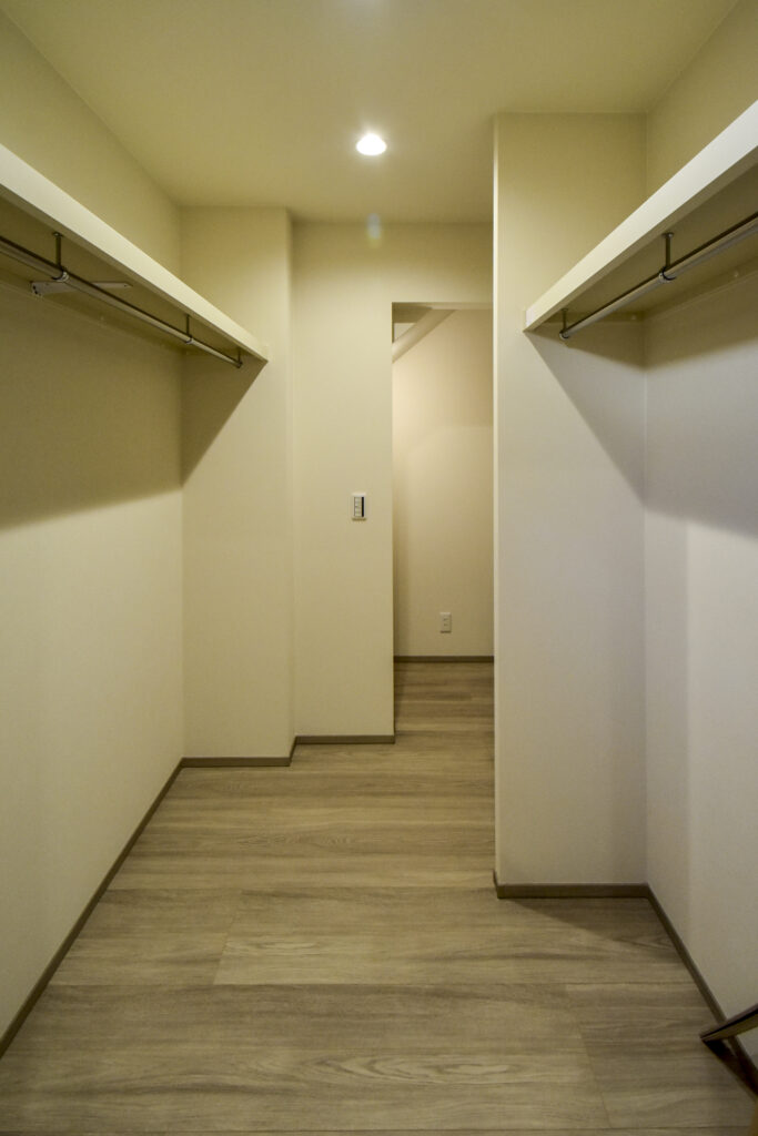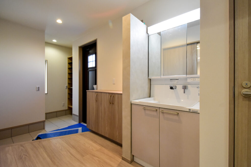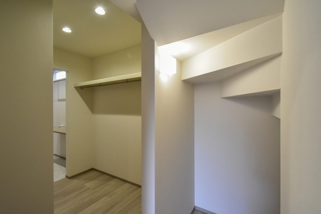 ■脱衣室兼ランドリールーム横のW.I.Cでは、洗濯物をそのまま収納でき、家事が格段ラクに◎