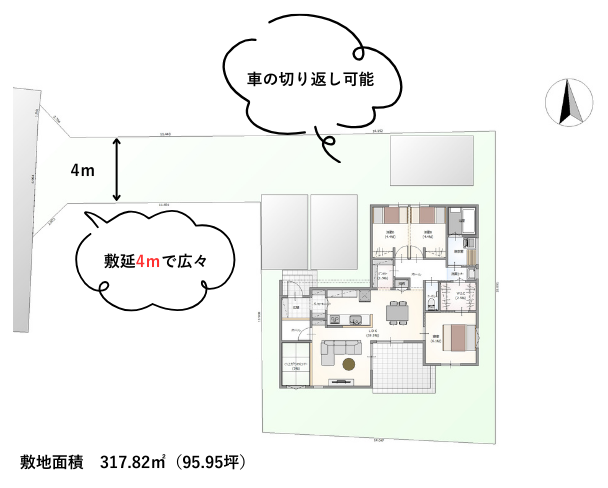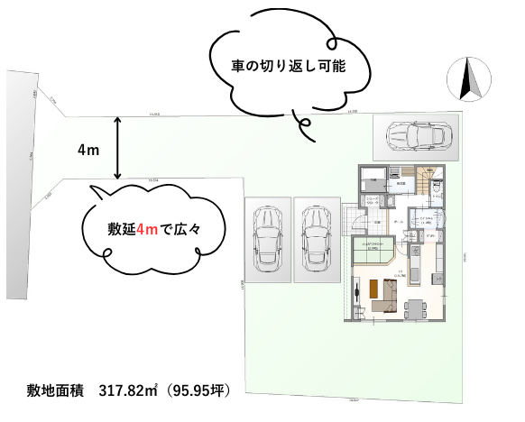■旗竿地ですが間口が広いので、車の出入りもラクラクです