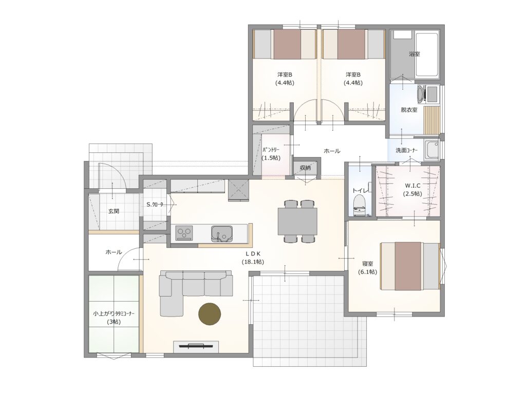■カクニシビルダーの自由設計は、設計士がプラン打合せに同席し、オンリーワンの家づくりをご提案いたします