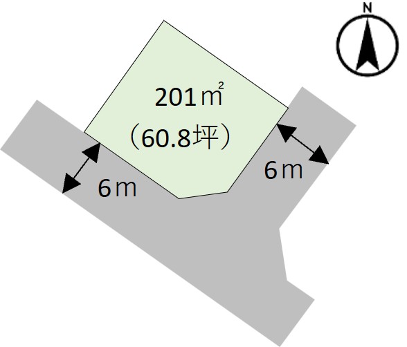 現地土地写真 201.00㎡ 60.8坪 日当たりの良い南東角地