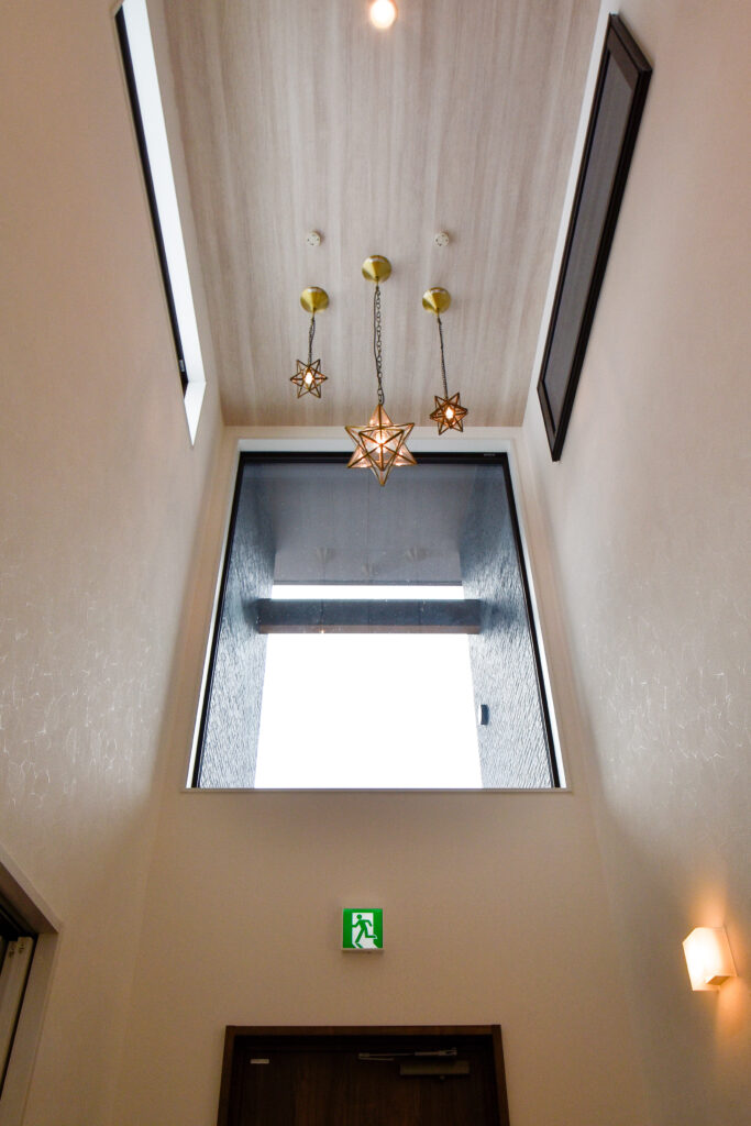 吹き抜けに輝く星のペンダントライト